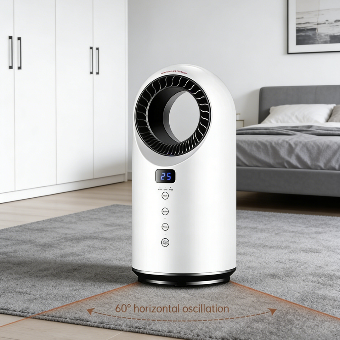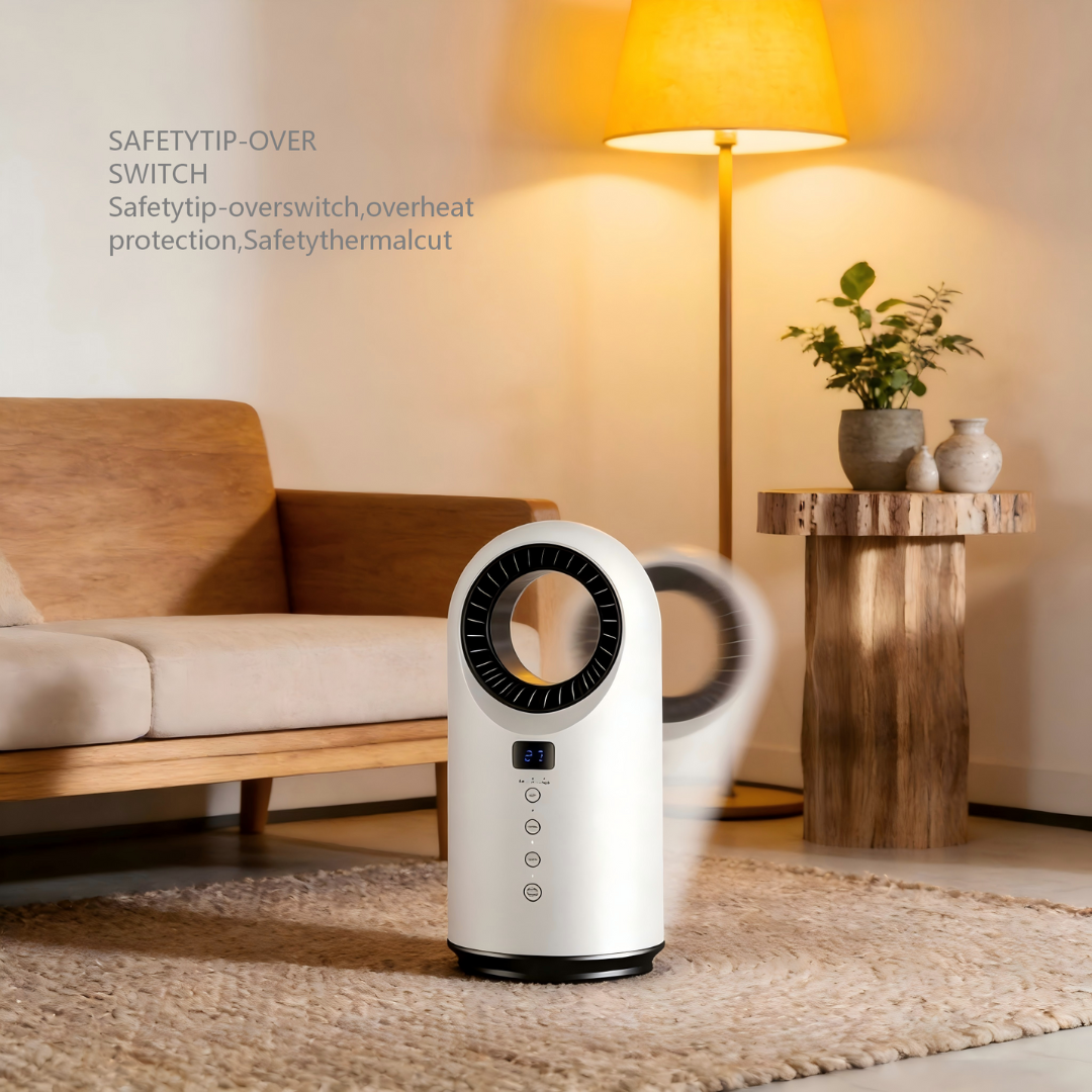 The vortex turbine fan system pushes heated air outward in a steady, wide flow, evenly distributing warmth throughout the room and eliminating cold spots.