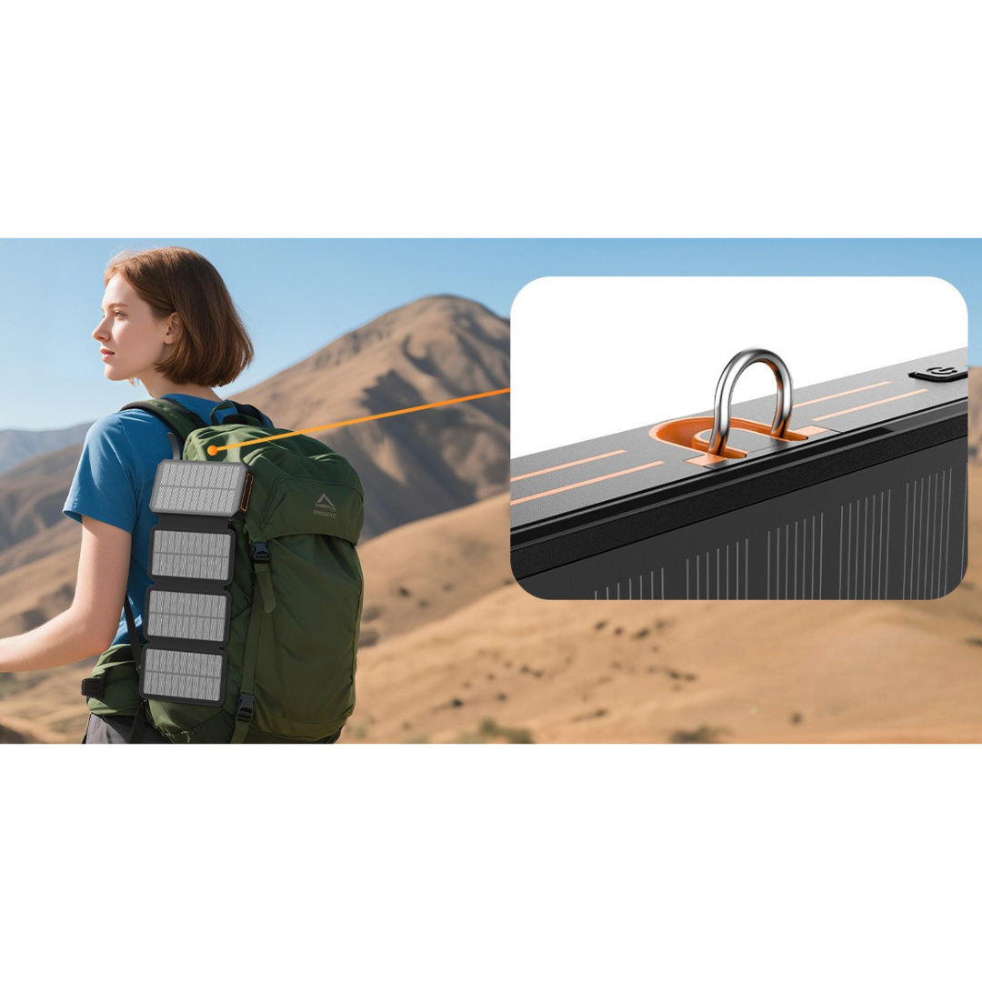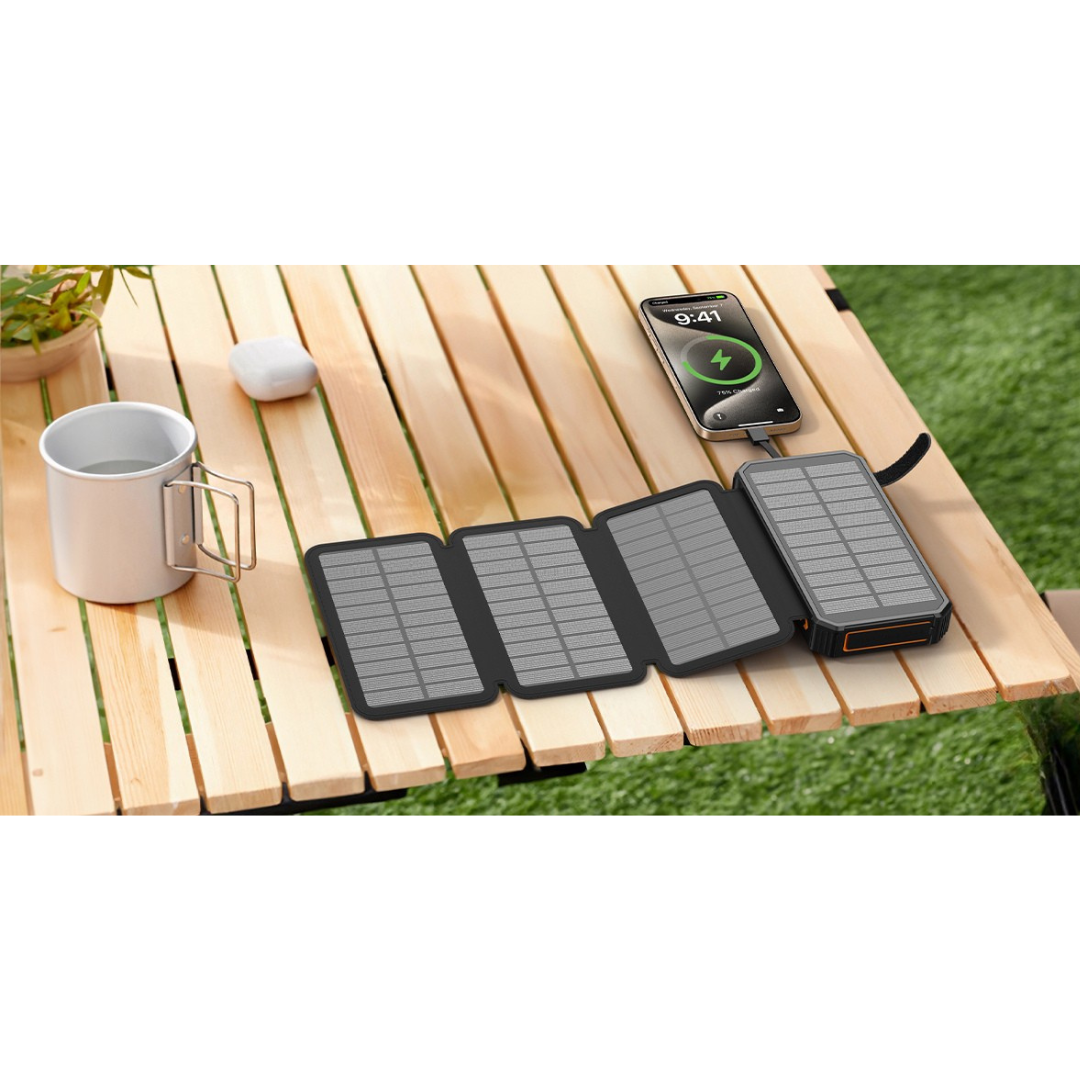 Solar input is modest (≈1 A under good sunlight), so it’s best used as a trickle or emergency backup. USB-C 20 W input is much faster for full recharges.