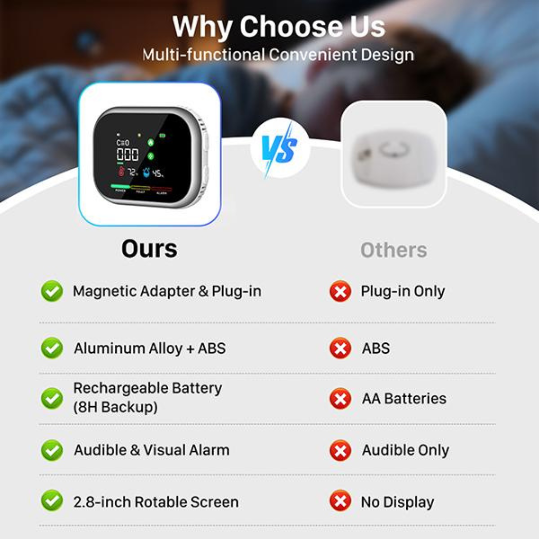 Packed with multi-hazard sensors, bright LED indicators, and a loud audible alarm, it provides real-time awareness you can trust. Whether youβre safeguarding your kitchen, garage, workspace, or home, this detector brings professional-level safety, clarity, and peace of mind to everyday living.